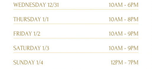 LAST SEATING IS ONE HOUR PRIOR TO CLOSING EACH DAY.